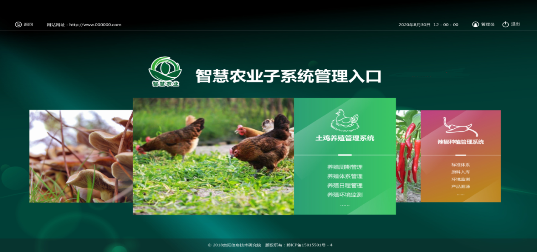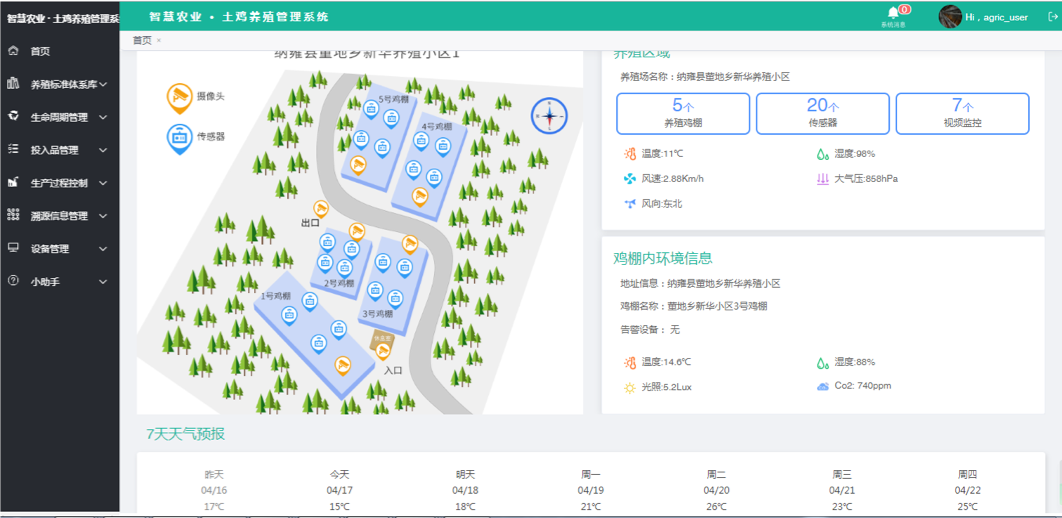 智慧农业系统平台以生态家禽(土鸡养殖)、食用菌、辣椒种植、畜禽养殖为应用支撑, 依托物联网和区块链手段,为农产品生产流程管控信息,提供标准化、智能化的辅助决策,提高生产效率,提升农业生产智能决策能力。