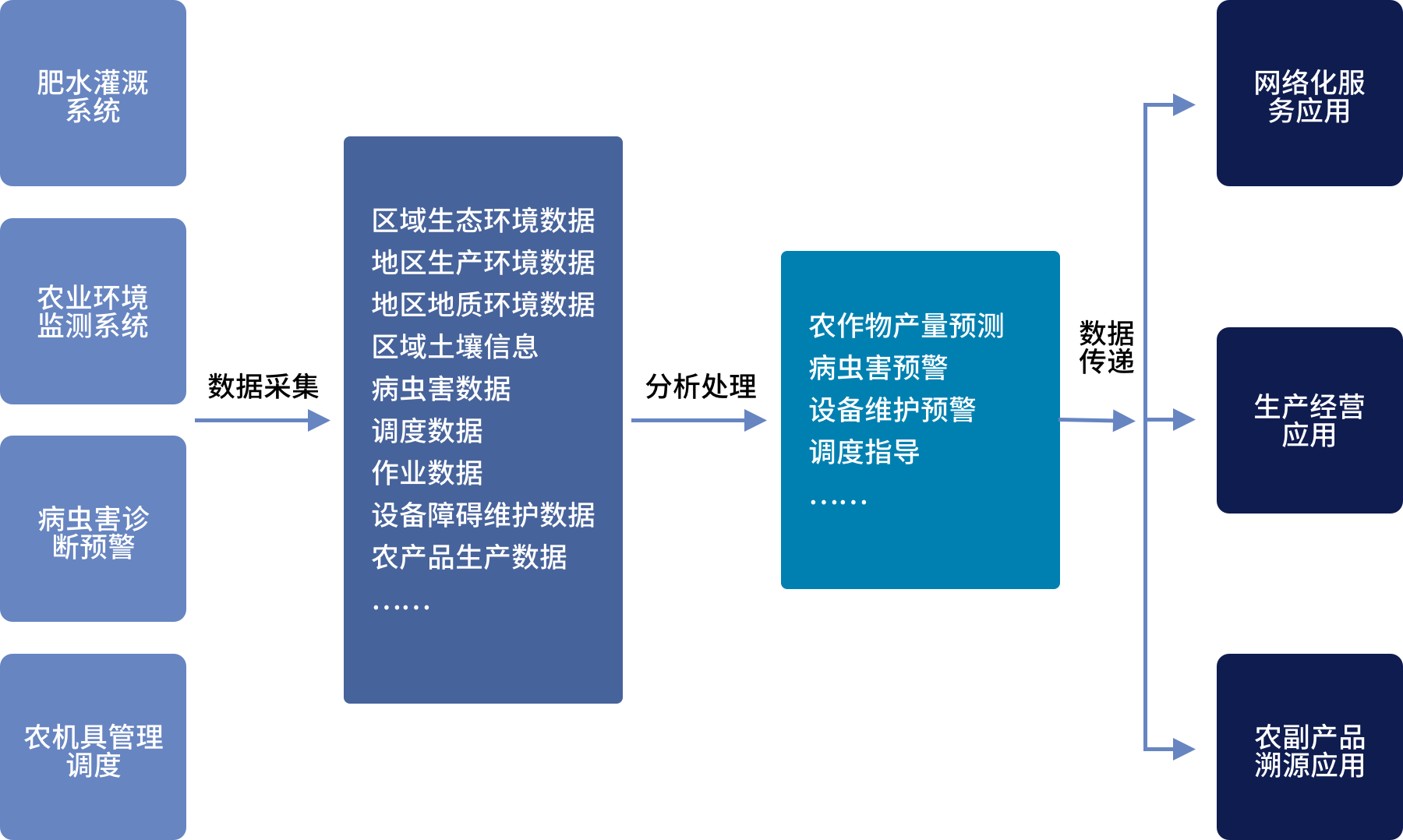 聚焦知识和信息生产要素,重构产业价值链创新,提供用户管理经验转为数字管理经验,通过大数据分析技术,有效提升农户或企业的生产效率,起到降本增效的目的。