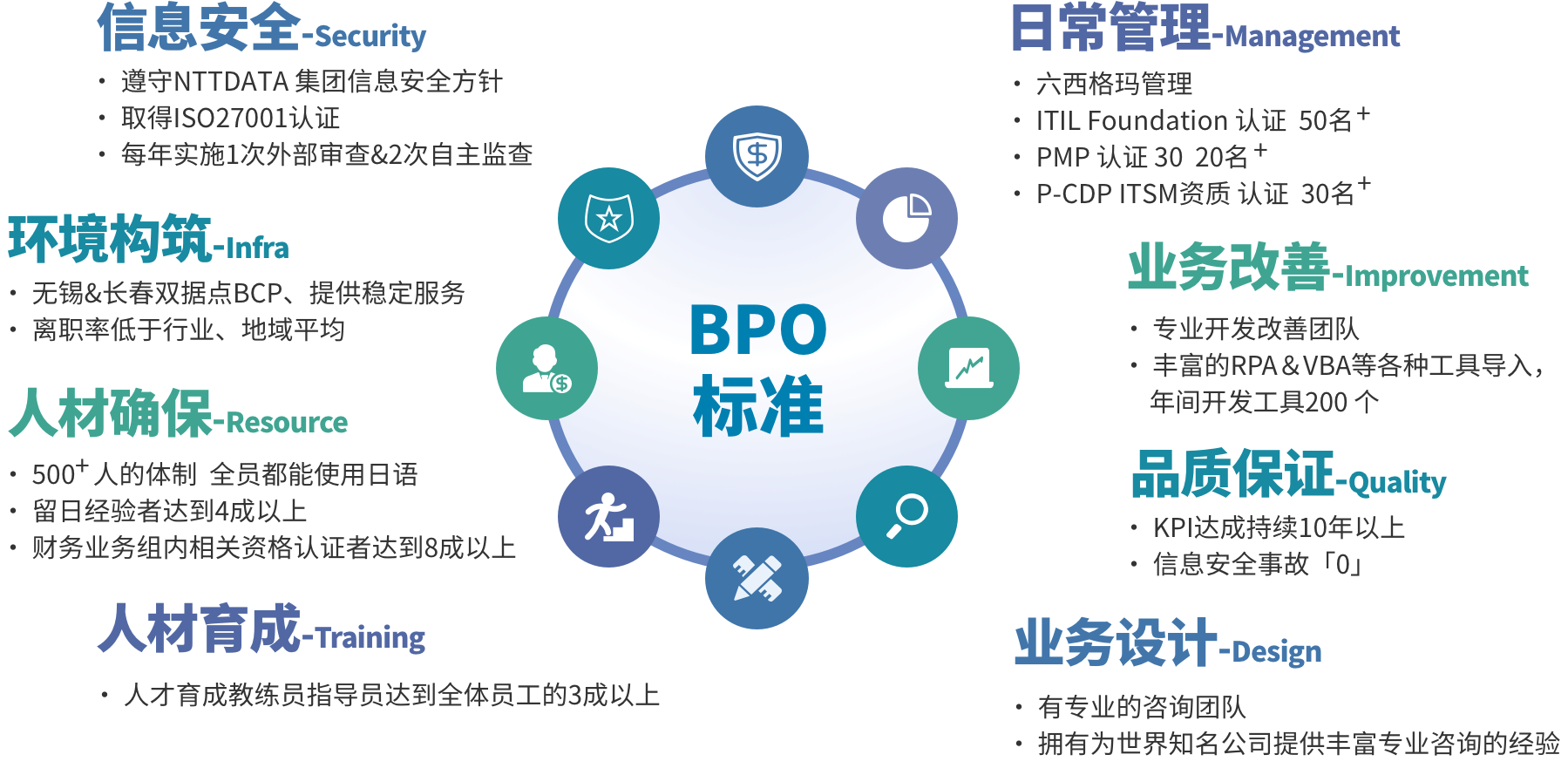NDIT BPO充分理解客户在改进流程和提升效率方面的实际需求, 主要面向日企客户提供财务和会计、人力资源、数据内容服务等一系列专项或跨职能的外包服务。