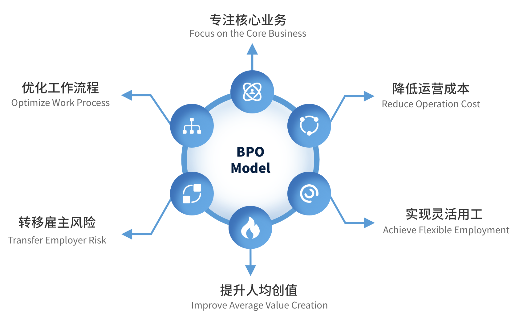 NDIT BPO服务架构覆盖企业流程管理的生命周期,助力企业优化流程架构,提高效率,节约成本,持续改进,实现卓越运营。
