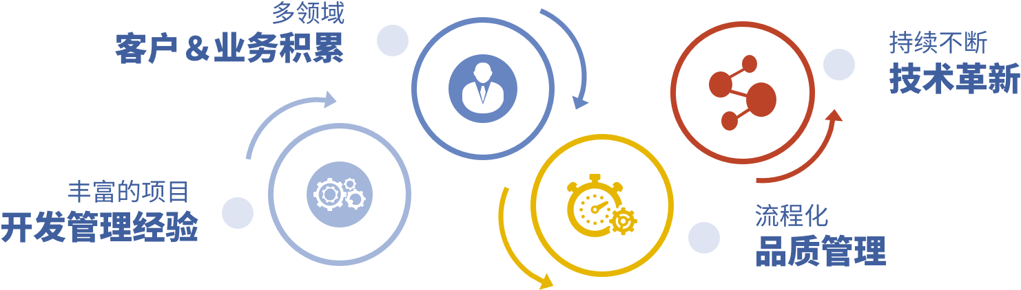 拥有专业的质量管理团队,在项目实施过程中,持续改进管理流程,以降低风险、 提高开发管理能力、满足客户需求、确保项目品质为目标,为最终顺利交付提供了强有力的保障。